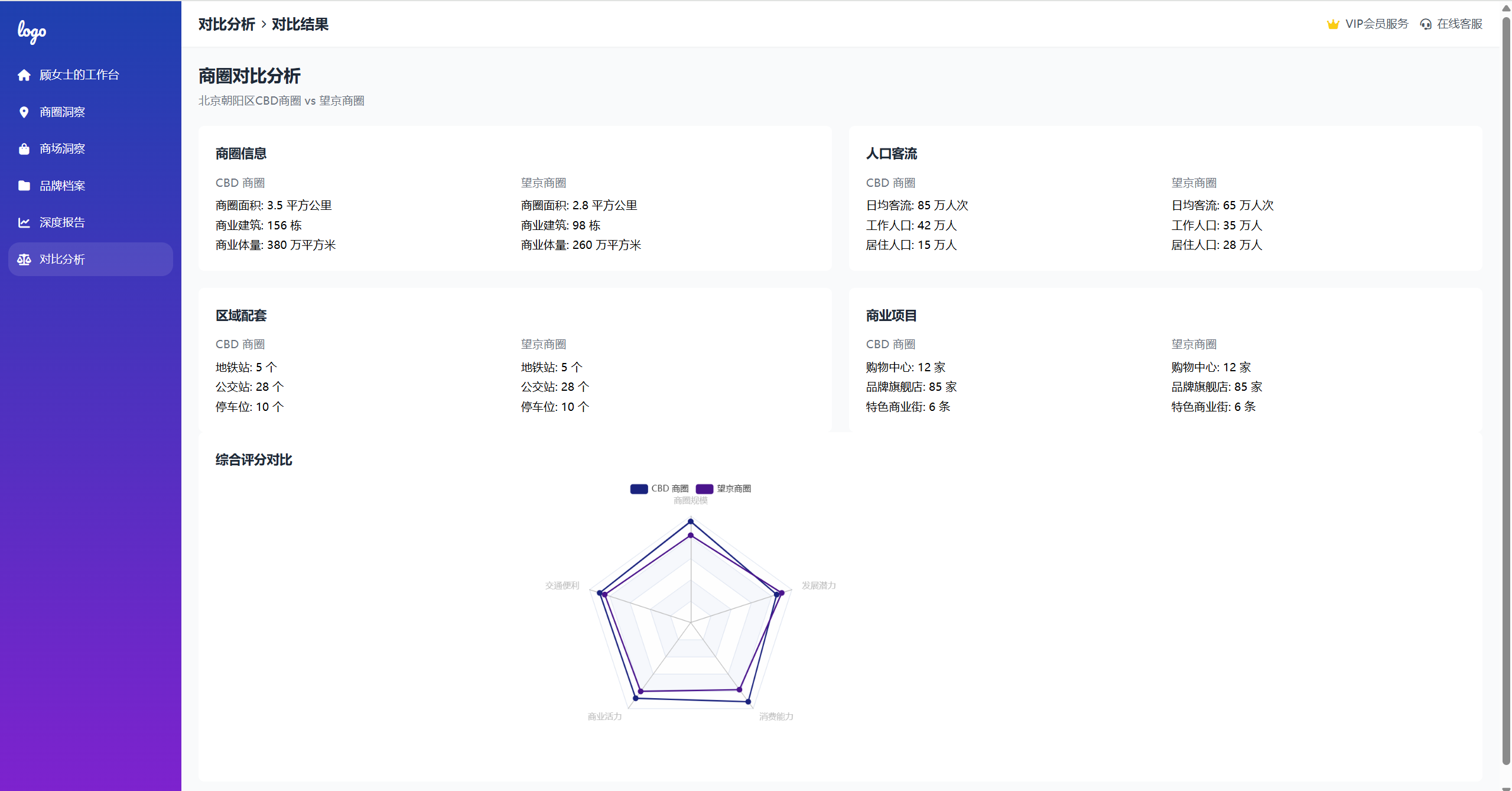 多维度对比商圈、商场和品牌指标,助力发现竞争优势和差异化机遇。